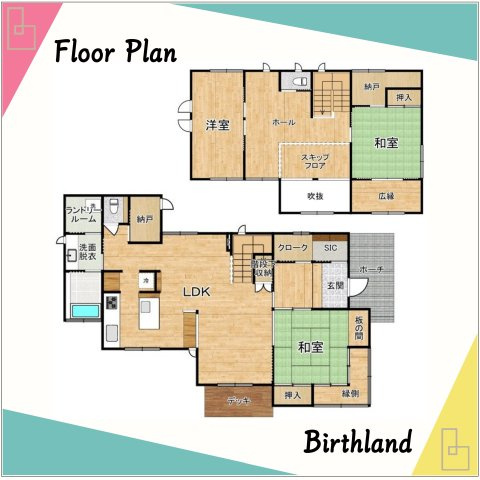 システムキッチン、カウンター付き、納戸収納2カ所、スキップフロア